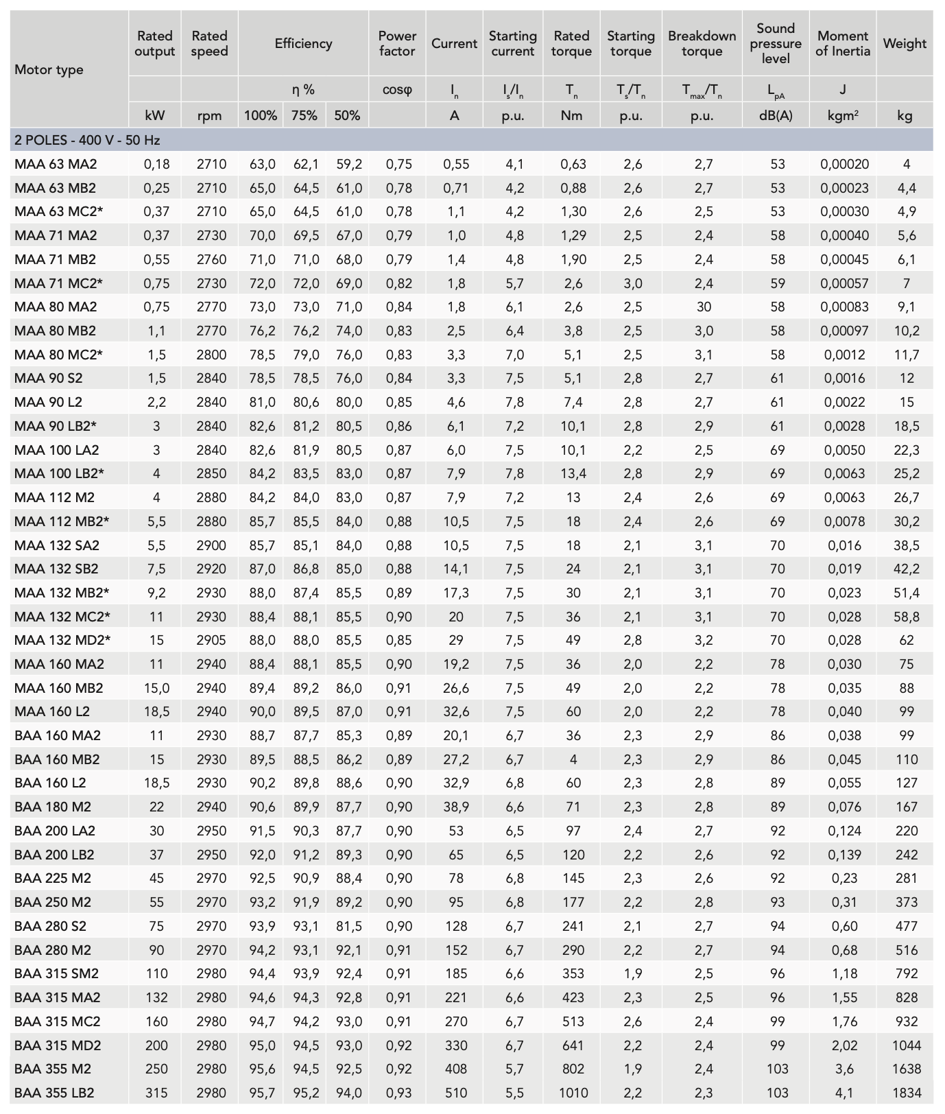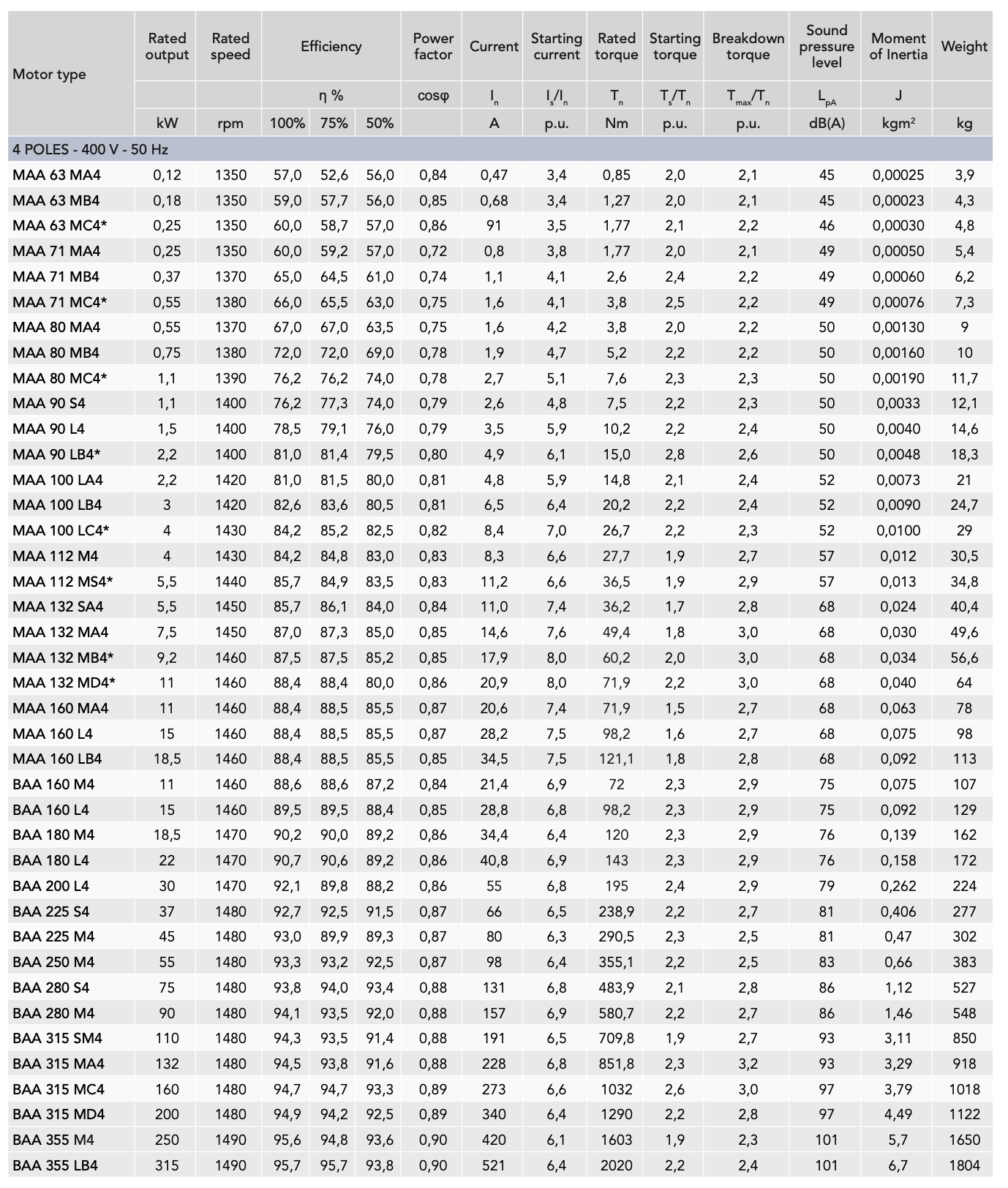 • All parameters are measured in accordance with IEC 60034-2-1