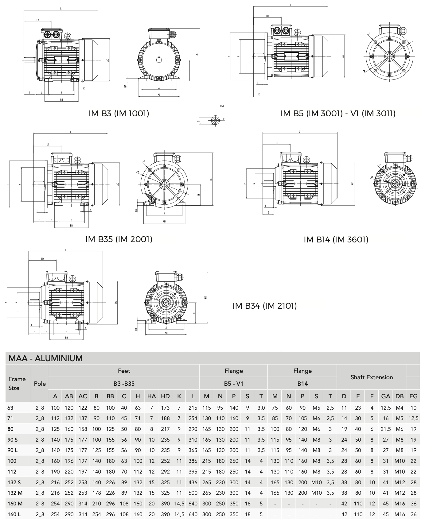 • IM B3 (IM 1001 ) , IM B5 ( IM 3001 ) , IM B35 ( 2001 ) , IM B34 (IM 2101 ) , IM B14 (IM 3601 )